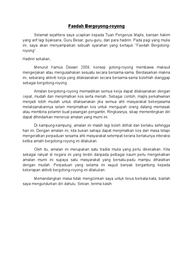 Contoh Karangan Faedah Gotong Royong Pdf